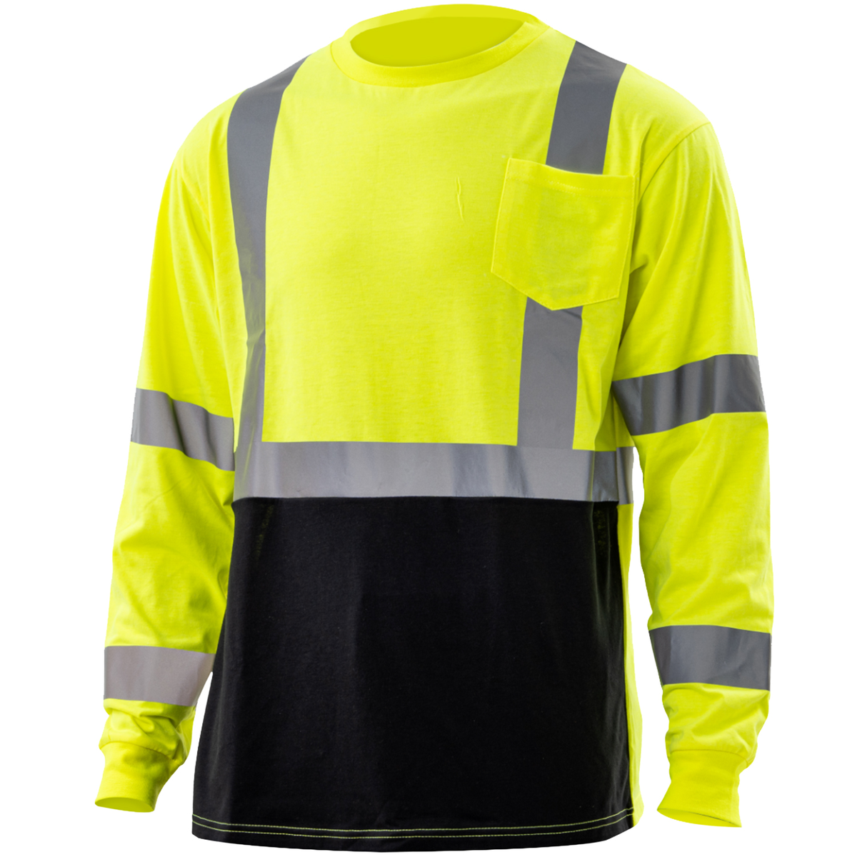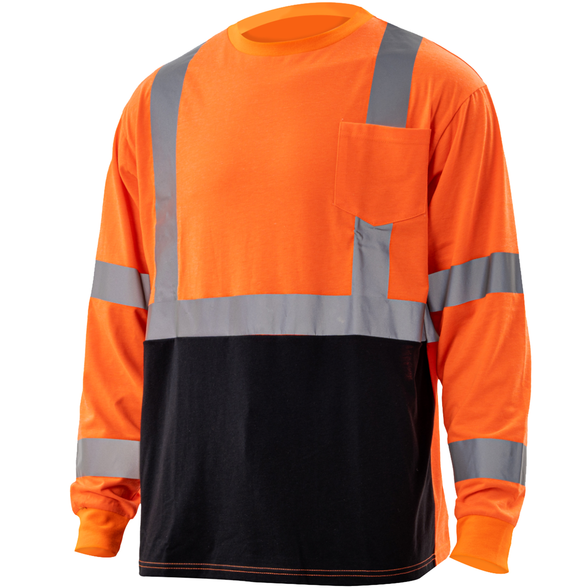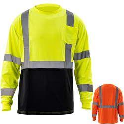 Experience the epitome of comfort and safety with our 170 gsm poly-cotton fabric reflective tape safety long sleeve color block t-shirt with pocket. Designed for active individuals, this safety product complies with ANSI/ISEA 107-2015 Type R Class 3 requirements & color block tee features a breathable, 2 band and brace design for enhanced visibility. Whether you're working on-site or exploring the outdoors, this high-visibility t-shirt guarantees optimal comfort and protection. Upgrade your safety gear now with this must-have addition to your wardrobe.
