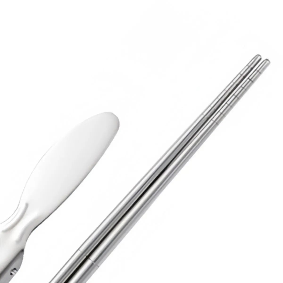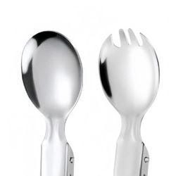 Additional InformationCompact stainless steel camping utensil set with folding design and carrying pouch, ideal for outdoor meals.