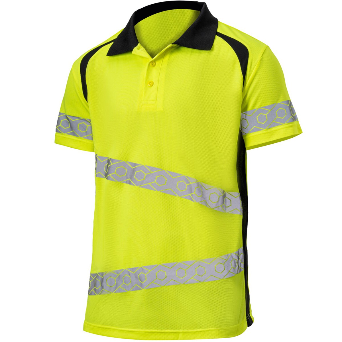 Experience a new level of comfort and freedom with our ModernFit Safety Short Sleeve 130GSM Polo Shirt. Designed for active professionals, this close-fitting garment offers exceptional movement and elasticity, supported by reflective elements that enhance visibility and safety. Enjoy irritation-free wear with three buttoned collar and confidently meet safety standards with its ANSI/ISEA 107-2020 Type R Class 3 compliance and featuring double band 2" width segmented tape,. Ideal for a range of roles including construction, warehouses, traffic control, and volunteering, this breathable, two-tone mesh t-shirt ensures you stay cool, comfortable, and conspicuous in various work environments.